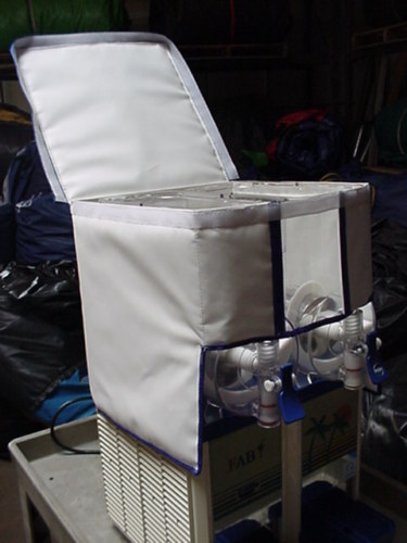 This Cool Cover is designed for the outdoor rental of the faby, bunn, granita, vevor, carpigiani or similar frozen drink machines. This is a necessity for rental companies or individuals using any machine in a hot environment. The Cool Cover is also a benefit to convenience stores where several machines together create a hot environment in a confined space.